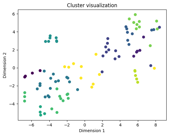 We can use this to our advantage when summarizing documents. If we embed all our chunks, then chunks that are talking about the same topic will be closer together in the vector space. Then, we can cluster the chunks together based on their semantic meaning. The image below shows a “squashed down” visualization (the embedding vectors have a dimension of 1536, here they are reduced to 2 dimensions) of the embedding vector space for a tender competition.